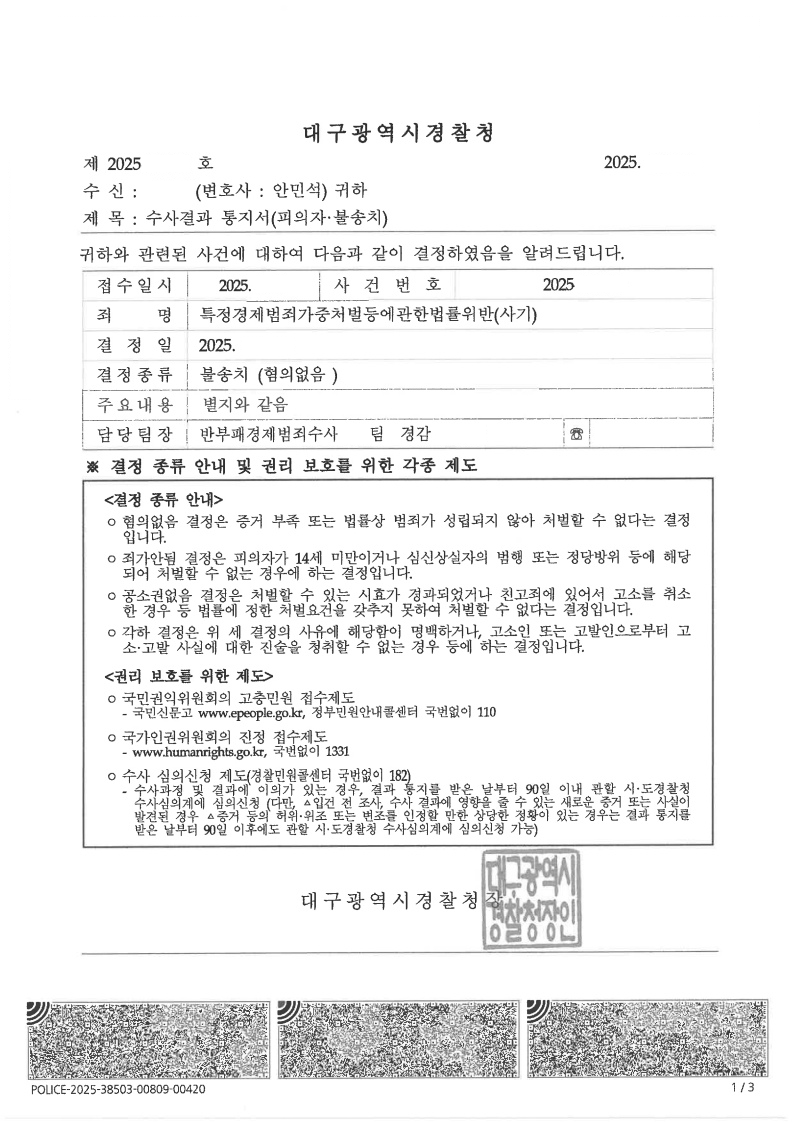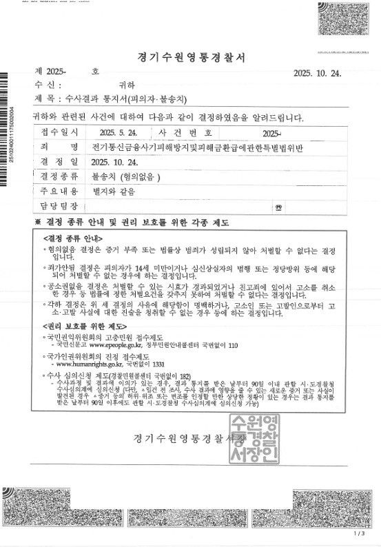 [보이스피싱/불송치(혐의없음)] 환전업무를 하다가 보이스피싱에 연루되었으나 불송치 혐의없음 처분을 받은 사안