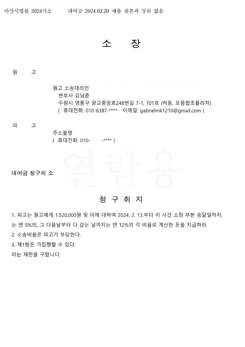 [대여금] 바다드림 플랫폼을 통해 소액 소송에 승소한 사례