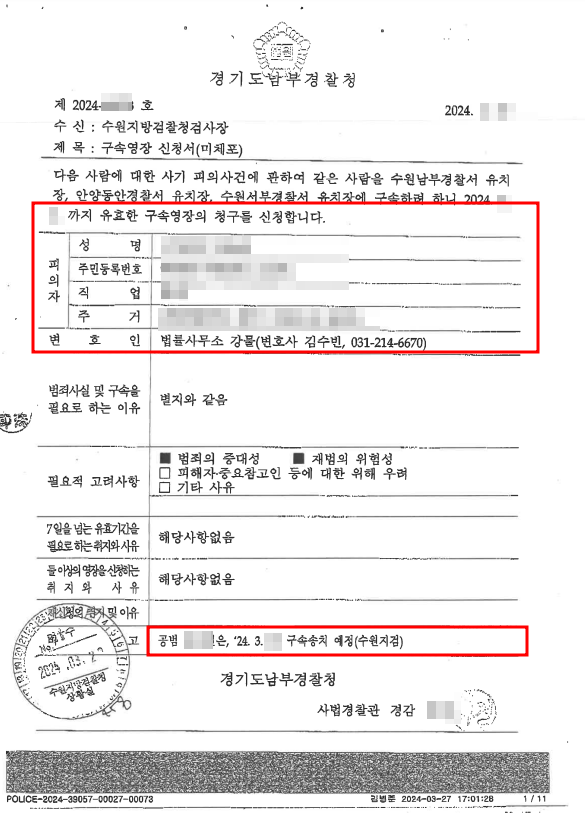 변호인은 의뢰인이 도망 염려 등이 없다는 점을 부각하고 수사에 협조하기 위하여 자수 및 출석요청서를 위임받은 직후 제출하였고, 자진 출석하여 장시간 조사를 받았습니다. 이 상황에서 자신의 입장을 충분히 소명하였지만 곧바로 구속영장이 청구되었습니다. 본 변호인은 구속 전 영장심사에 대비하고자 의견서를 빠르게 작성하고 24시간 내로 관련 자료를 확보 및 번역하였으며 재판장에게 보이스피싱 조직원이 아닌 평범한 유학생임을 강조하는 변론을 하였습니다.