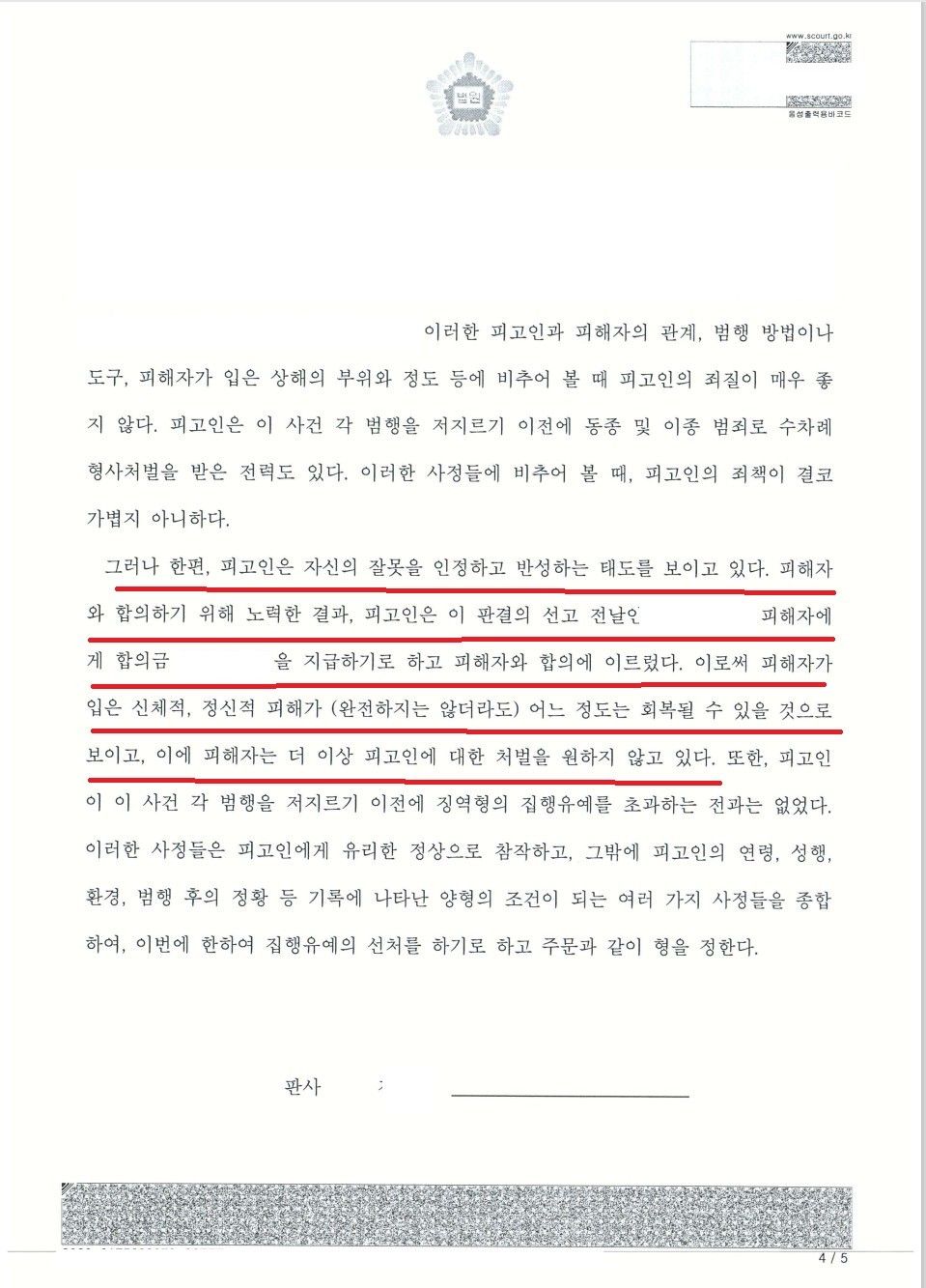 재판부는 의뢰인에 대하여 집행유예 판결을 선고하였습니다.