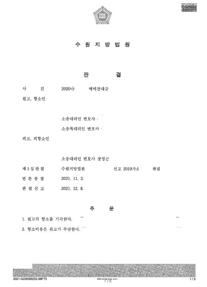 SUCCESS STORY[매매대금청구/전부승소] 매매 잔금을 지급하지 않거나 늦게 지급하여 지연손해금을 청구하였으나 방어에 성공한 사안