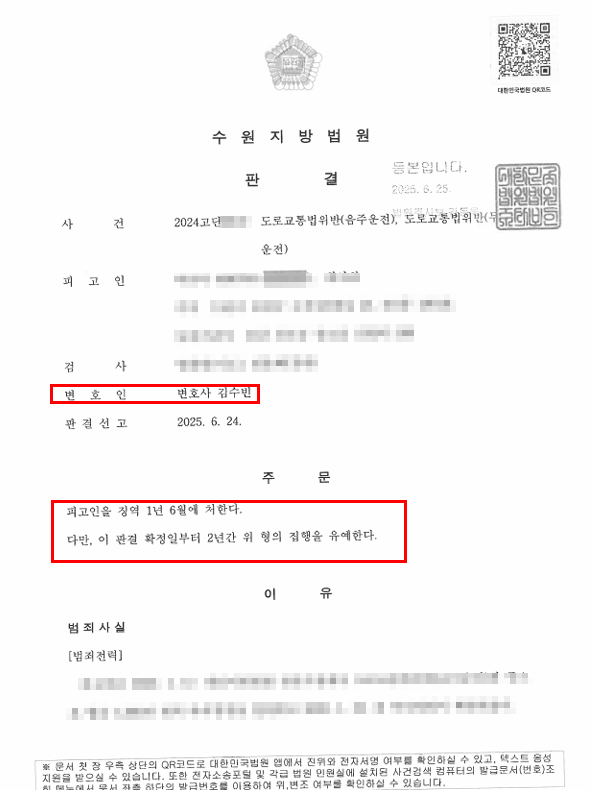 [음주˙무면허/집행유예] 음주 무면허로 3회 적발되었으나 집행유예를 받아낸 성공적 사안