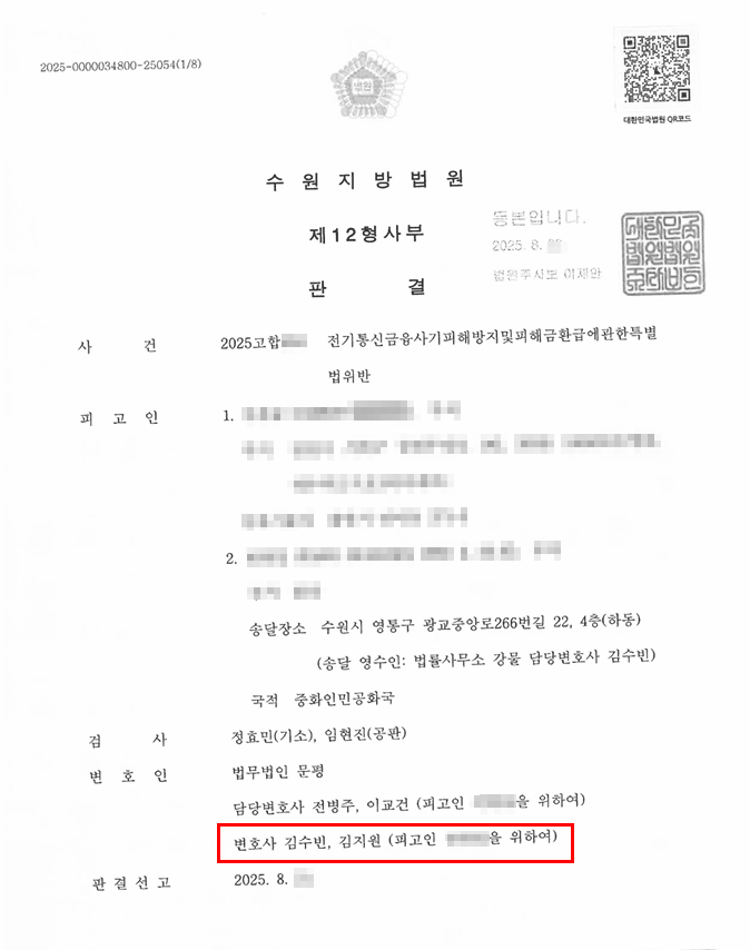 SUCCESS STORY[보이스피싱/집행유예] 친구에게 속아 보이스피싱 감시책으로 활동한 중국인에 대하여 집행유예 받아낸 사안