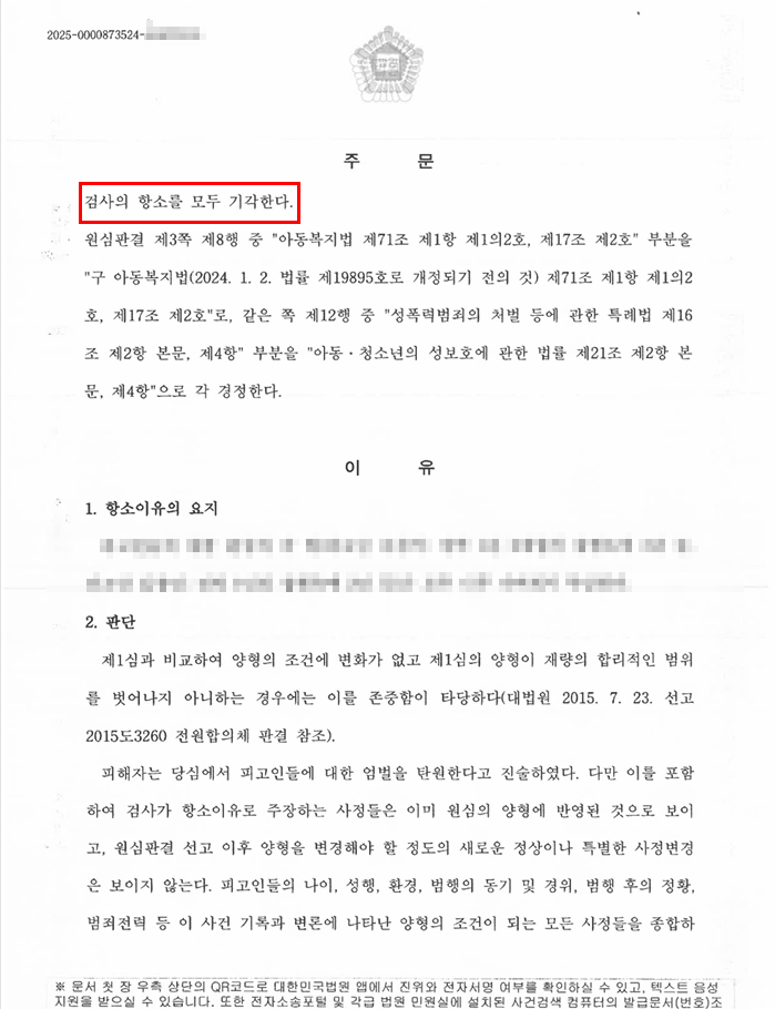 제1심 판결에 대해 검사가 "형이 너무 가볍다"는 이유로 항소를 제기하였고, 피해자 역시 항소심에서 엄벌을 탄원하는 상황이었습니다.