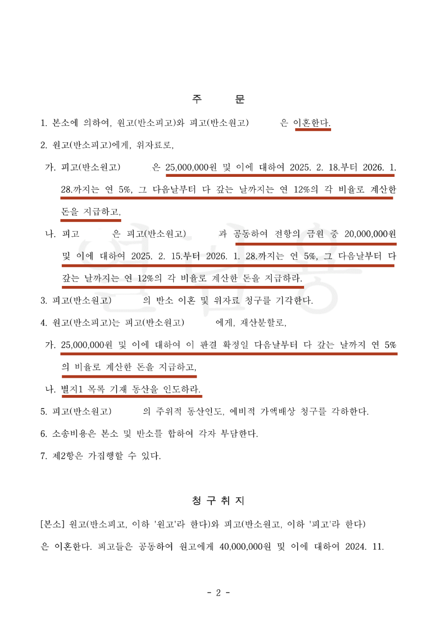 그 결과 배우자는 약 2천만 원대 중반의 위자료를 지급하라는 판결을 받았고,