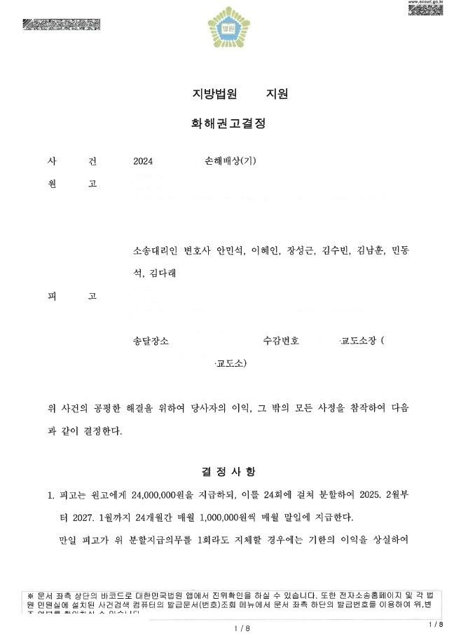 [손해배상/화해권고결정] 사기꾼이 수감 중인 상황에서 민사상 손해배상을 청구한 사안