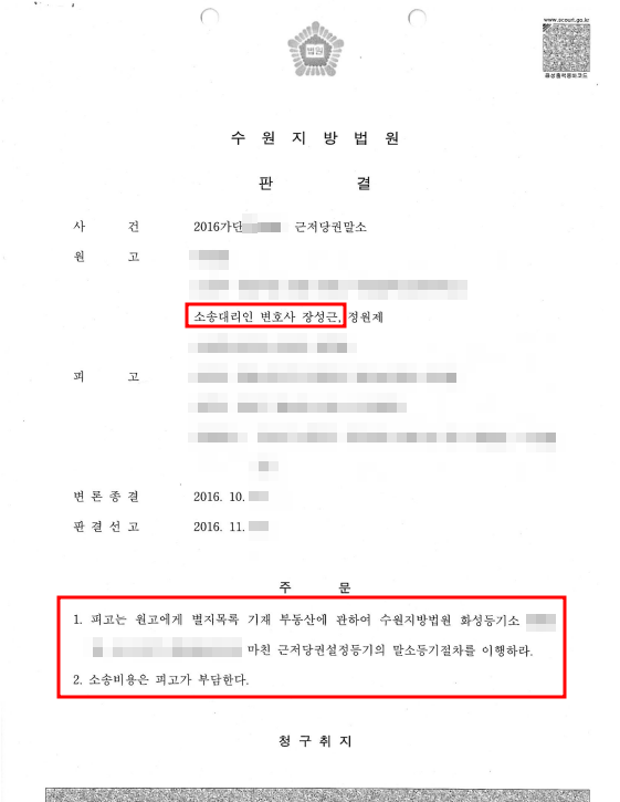 [근저당권설정등기말소/전부승소] 관급 공사 관련 용역계약에 부수한 용역대금 담보의 근저당권에 관하여 말소등기소송을 제기하여 전부 승소한 사안