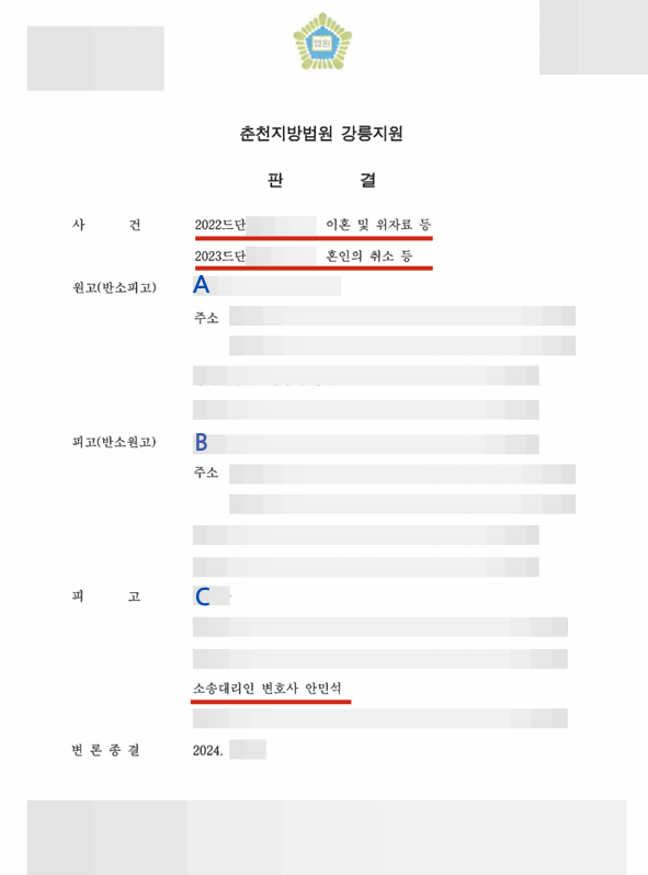 [상간] 부당한 위자료 청구 전액 기각, 법률사무소 강물의 성공 사례