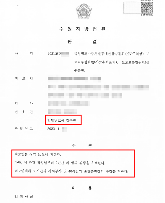 [뺑소니(도주치상), 음주운전/집행유예]술을 마시고 사고를 일으킨 후 현장에서 이탈한 사안에서 유리한 정상관계 변론을 통해 집행유예를 받은 사안