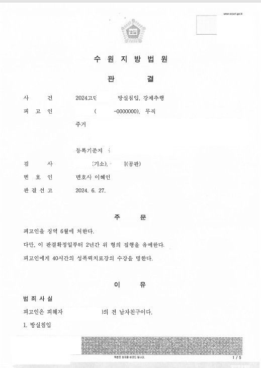 [주거침입및강제추행/집행유예] 방실 침입의 방법으로 강제추행을 한 사안