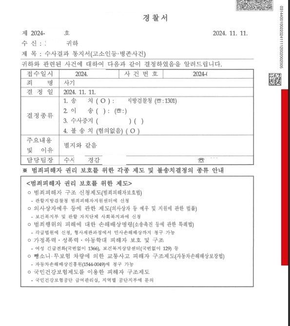 불송치(혐의없음)[형사]