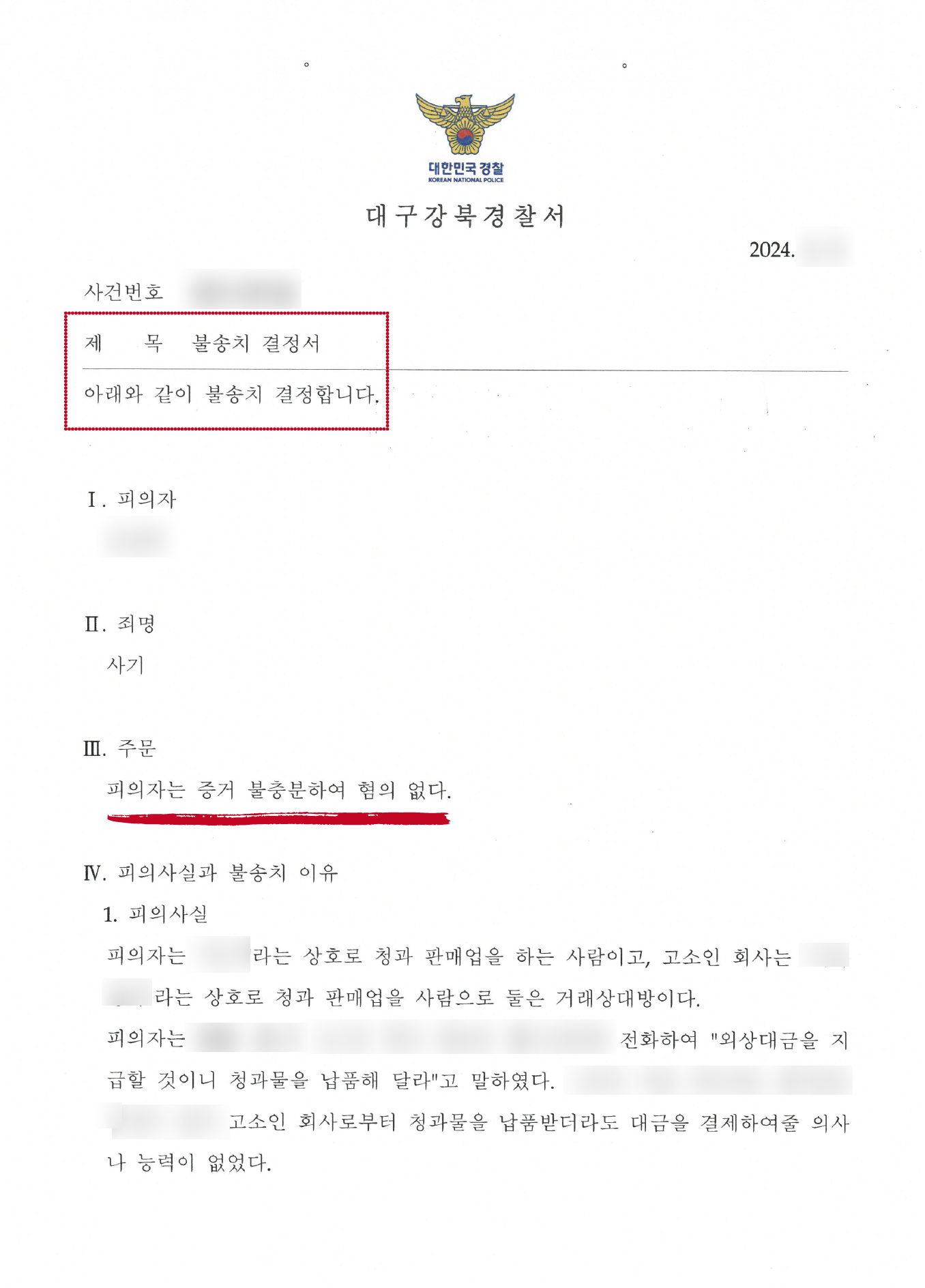 불송치(혐의없음)[형사][사기] 사기 혐의를 받은 의뢰인의 무죄 입증: 전략적 접근과 성공적 법률 대응 사례
