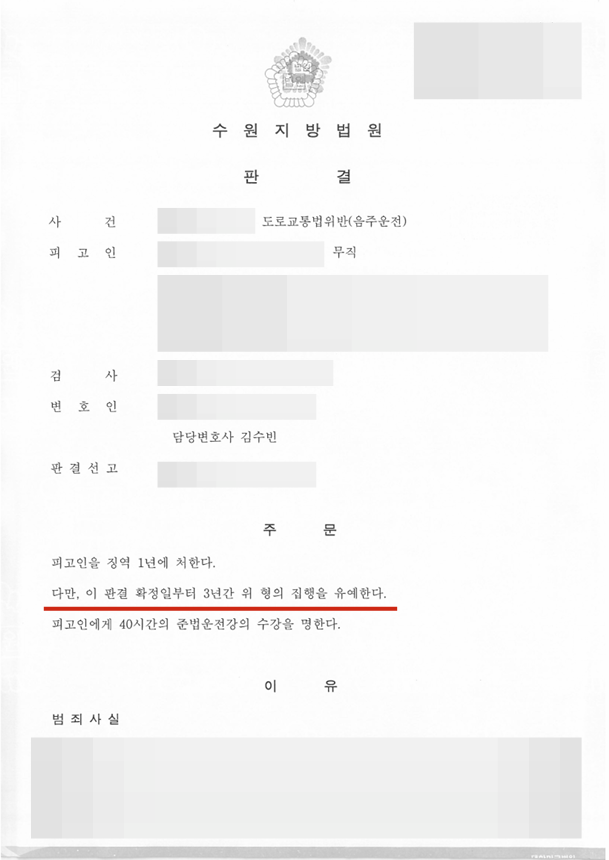 집행유예[형사][음주운전 5회/집행유예] 음주운전 5회 적발 의뢰인 집행유예 방어 성공 사례
