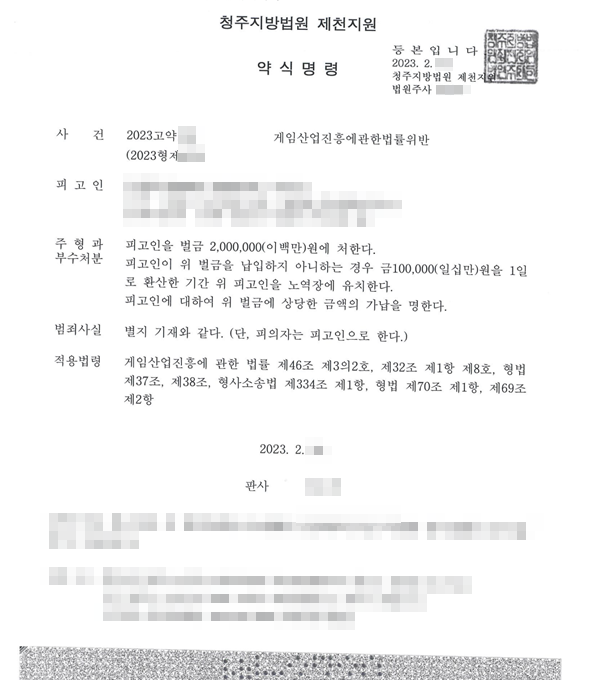 약식벌금[형사, 저작권 · 엔터][게임산업진흥법위반/약식벌금] FPS 게임 핵 프로그램을 판매한 혐의를 받은 의뢰인을 적극적으로 변호하여, 약식명령으로 가벼운 벌금형으로 마무리한 사례