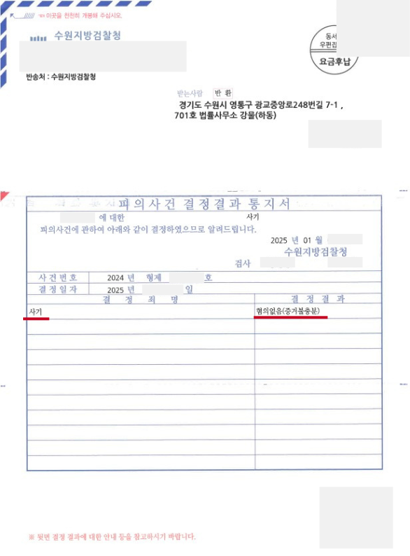 [사기죄/불송치] 사기 혐의로 고소된 피의자, 사기죄 불송치를 이끌어낸 사안